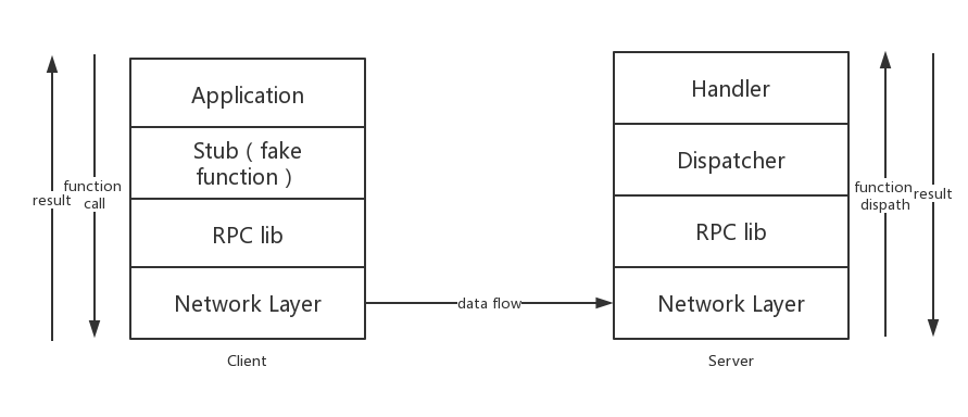 - RPC lib:RPC 库,包括一系列的编码解码工作,对于用户端来说,是编码用户的函数调用请求进入网络层,或者是解码服务端的结果成为上层结构可以理解的语言