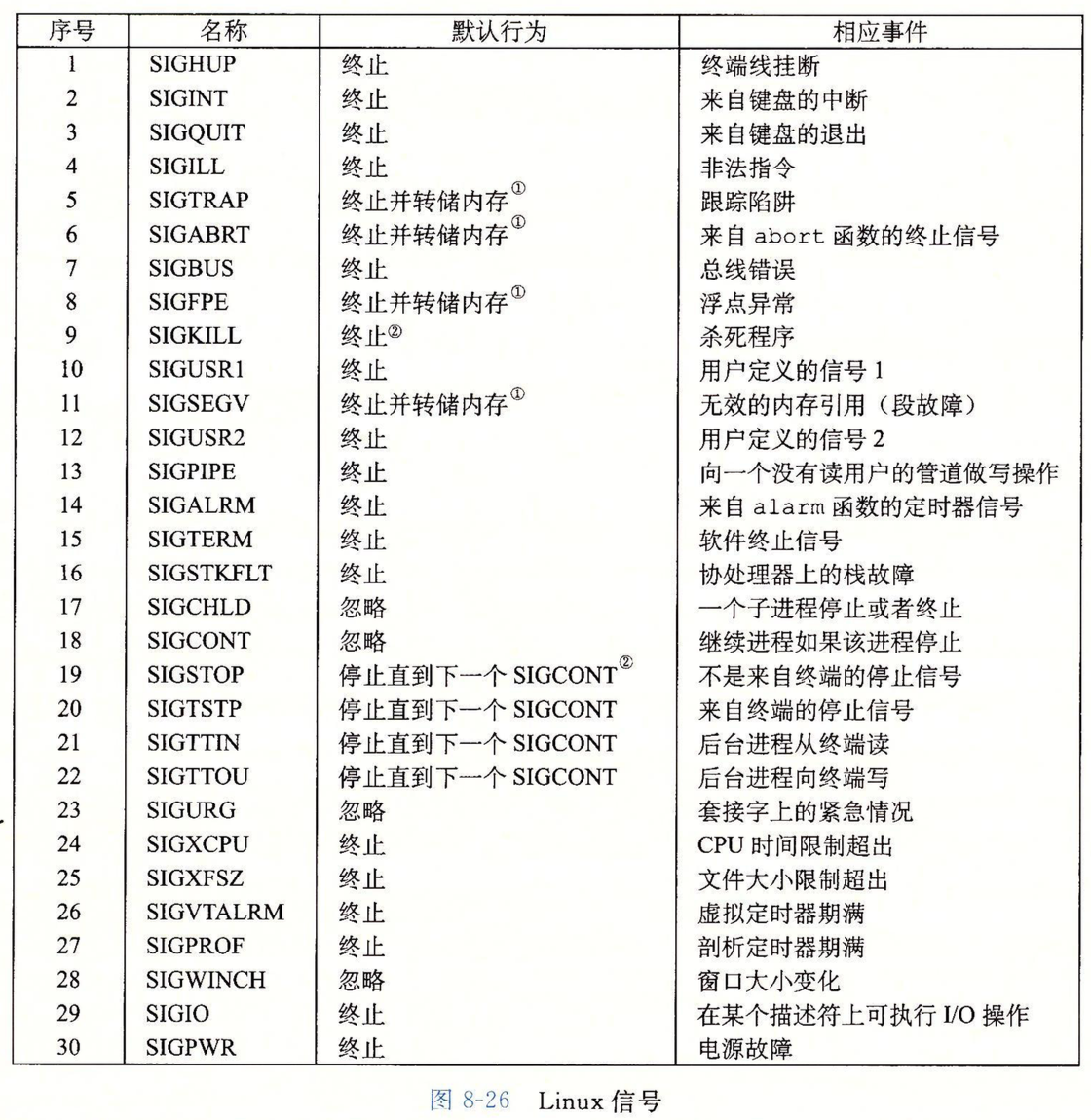 - SIGCHLD(子进程终止时,内核会发送这个信号给父进程)
