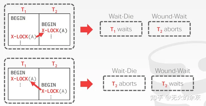 Wait-die 和 wound-die都是利用时间戳进行死锁预防,判断事务的新老级别。