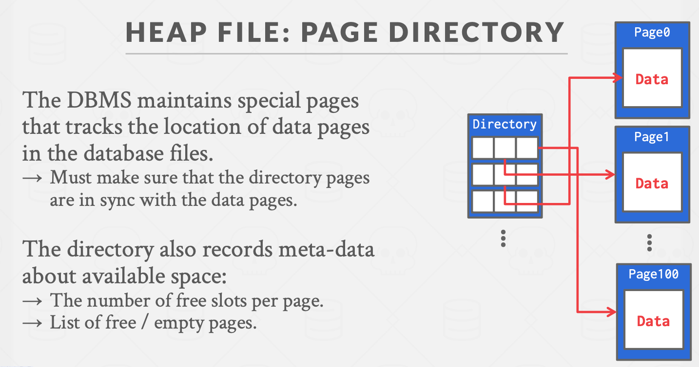 Heap FIile就是存储页的集合,把若干个页放一起作为一个文件管理。当有多个文件时,通过页ID找页的过程就不是那么直观了,我们需要页目录。