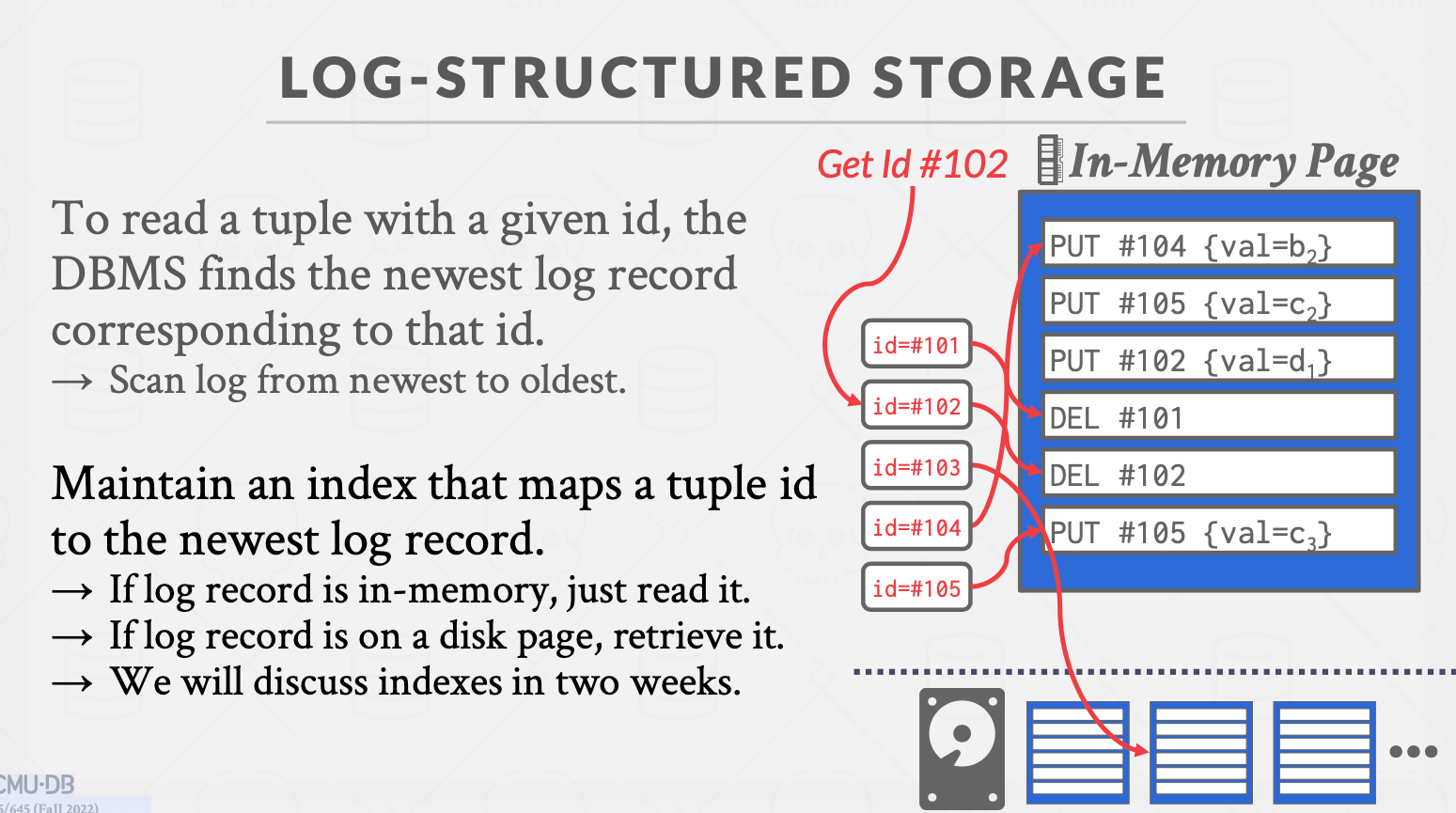 log-structured还是page里data部分组织tuple的内容,对比于tuple-oriented storage,log-structured只存储日志而不是数据本身。