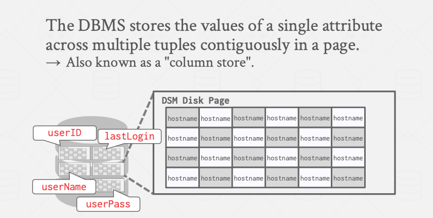 → Slow for point queries, inserts, updates, and deletes because of tuple splitting/stitching.