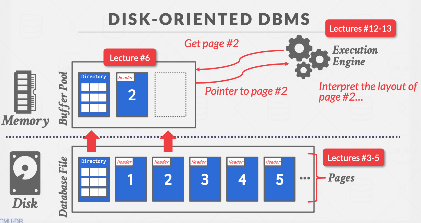 DBMS的执行引擎会先去缓存池中找,看看2号页是否已经被缓存在其中,如果没有的话,就从硬盘中把索引页读到缓存池里,通过索引页得知我们想要的2号页在硬盘中的位置,然后去硬盘中再把2号页读入缓存池,之后把缓存池中2号页的指针返回给执行引擎。