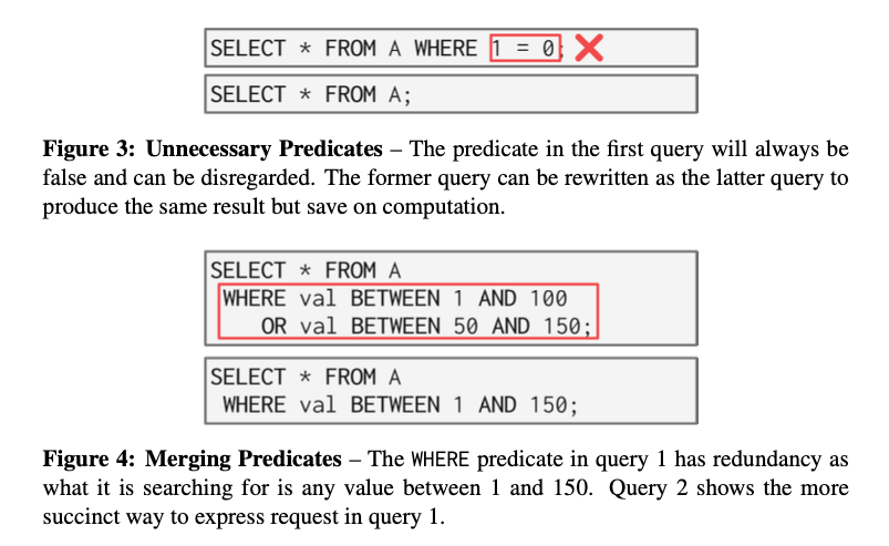 DBMS会通过人为设置的一些规则把查询语句的表达式(尤其是谓词表达式)重写,让它变得更加精简、高效。