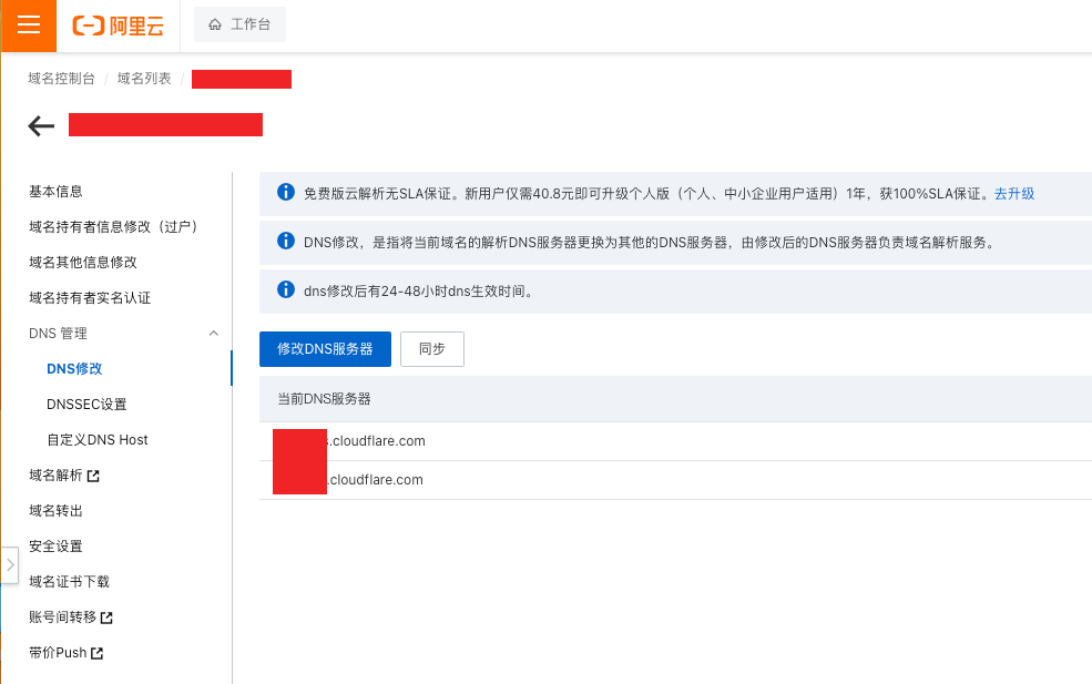 DNS Name Servers 是负责解析你的域名的服务器。切换阿里云域名解析服务到Cloudflare的域名解析服务,也就是需要切换域名服务器。