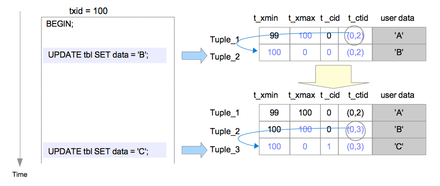 typedefstructHeapTupleFields { TransactionId t_xmin; /* inserting xact ID */ TransactionId t_xmax; /* deleting or locking xact ID */